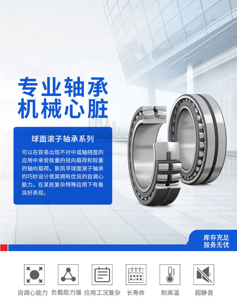 對(duì)稱滾子的自我調(diào)整,提供**的負(fù)載分布沿滾子長(zhǎng)度。這使強(qiáng)調(diào)低所有負(fù)載條件下,延長(zhǎng)了軸承的使用壽命。